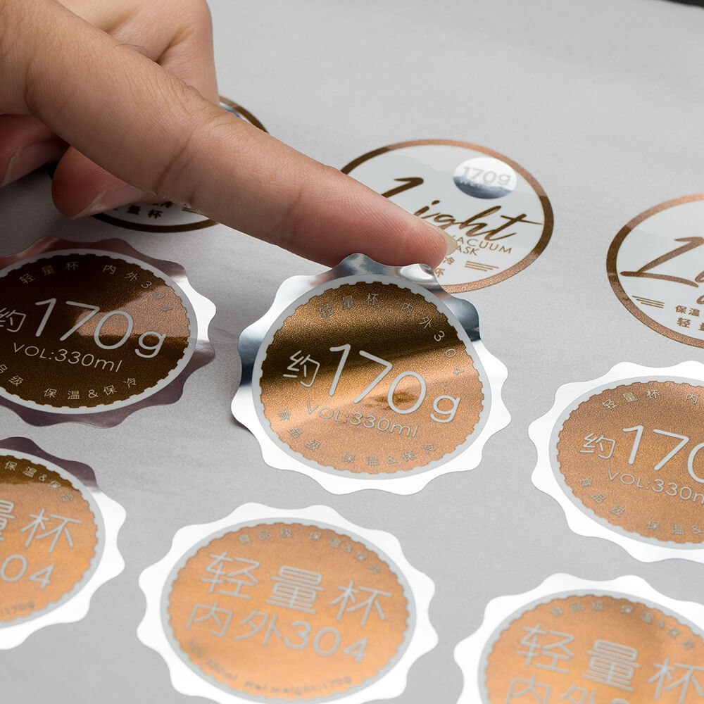 ゴールド/シルバー箔ステッカー:アルミニウム箔ホットスタンピング加工で作られ、鏡のような反射効果を呈し、高級品、化粧品、ギフト包装に適しています。