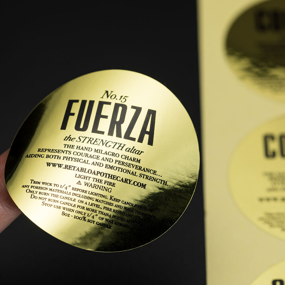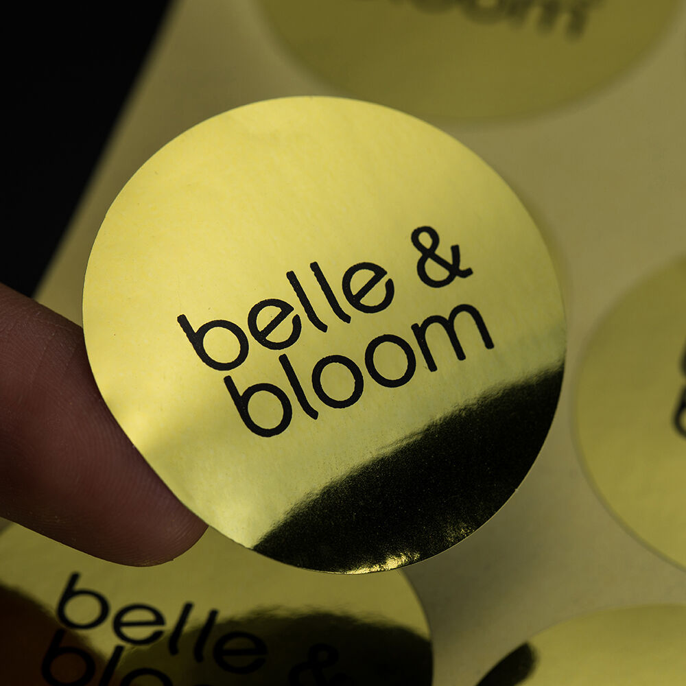 Gold/silver foil stickers: Made with an aluminum foil hot stamping process, they present a mirror-like reflective effect and are suitable for luxury goods, cosmetics, and gift packaging.